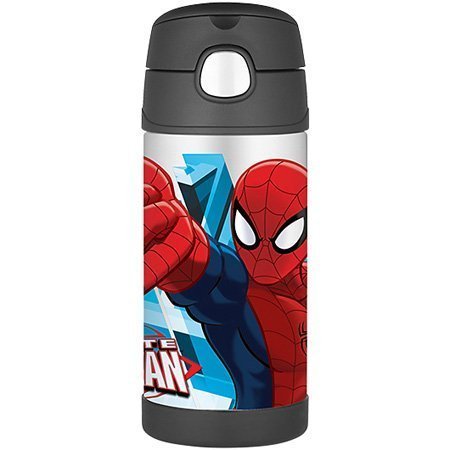 This exciting Spider-man Funtainer Bottle is great for your little one or the little one in you! Take cold drinks with you anywhere you go. Since inventing the vacuum bottle more than 100 years ago, Thermos innovations have become an essential part of American life. Whether you're packing a school lunch, going to practice or a game, on a family outing, or relaxing at home, the Thermos Funtainer bottle is the most dependable way to keep your child's beverages colder and fresher for longer. BPA free and easy to clean, Funtainer bottles have a 12 ounce capacity and are designed to keep liquids cold for up to 12 hours. Made of unbreakable stainless steel with TherMax vacuum insulation, this bottle features a push button lid and pop up straw.