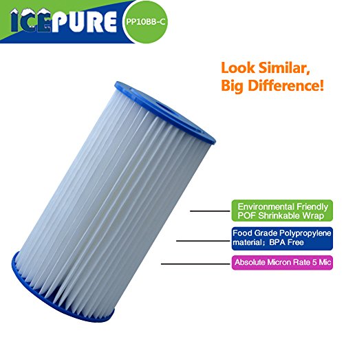 ICEPURE ICP-PPL10BB-5-2PACK Whole house big blue sediment pleated water filter compatible with Culligan R50-BBSA, NSF42 Certified cartridge