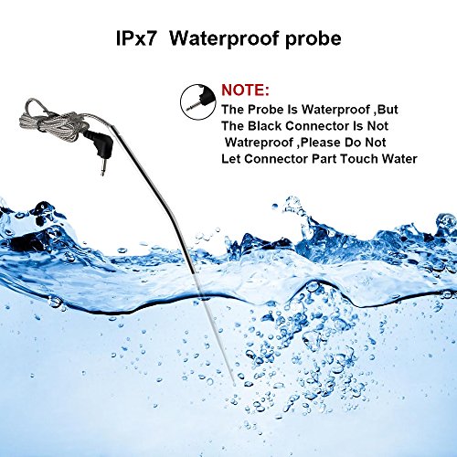 ⁂TOTALLY UPGRADE AND UPDATE(ASIN:B076CND1KB):Our Probe and Wire are built to IPX7 standards and waterproof grade which means that it can be immersed in the water depth of 300mm for 30 minutes.NOTE:The plug is not waterproof and its size.