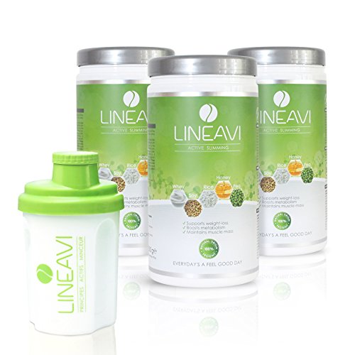 Lineavi Weight Loss Shakes - the Natural Meal Replacement Shakes for Your Diet Plan with Shaker Bottle, 17.6 Ounce - Gluten-Free and Lactose-Free | 3 Pack