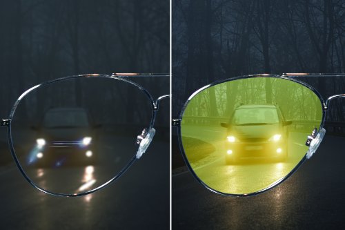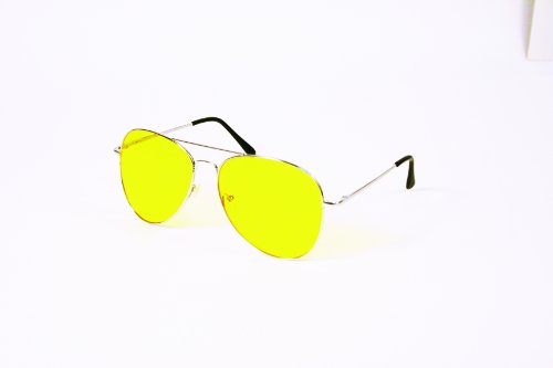 These polycarbonate glasses are meant for use between dusk to dawn under all weather and atmospheric conditions that can make safe driving difficult. Polycarbonate was developed in the 1970s for aerospace applications, and is currently used for the helmet visors of astronauts and for space shuttle windshields. Eyeglass lenses made of polycarbonate were introduced in the early 1980s in response to a demand for lightweight, impact-resistant lenses. Since then, polycarbonate lenses have become the standard for safety glasses, sports goggles and children's eyewear. The stylish aviator frame ensures that nobody knows your secret to safe driving.Feature
