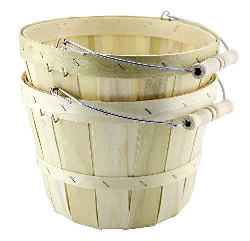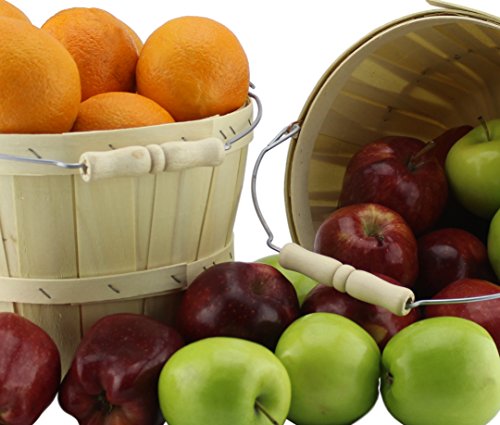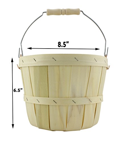 Studio : Cornucopia Brands Publisher : Cornucopia Brands Product Description These baskets have so many uses, we wanted to give you two! Use for . . . * fruit veggie harvesting. Great for berries, peppers, and cherry tomatoes. * lining with tissue paper filling with snacks such as popcorn, candied apples, or cookies. * a Halloween treat bucket. * fall decor displays. * ling with a plastic liner and inserting a potted plant. Also great for dried flowers or pine cones. * a gift basket, hostess gift, or guest room display. * displaying products at a fundraiser. SIZE REMINDER: A half peck means it holds 1.16 gallons. Don't get this mixed up with the larger peck or bushel baskets. This basket is 6.5 inches tall by 8.5 inches diameter. DESIGN: Wire bail (handle) with 3.25" wood hand hold. Basket is made of wood and stapled. The bail is attached with copper colored hooks. Basket is unfinished wood ready for you to stain or paint as desired. 0 |