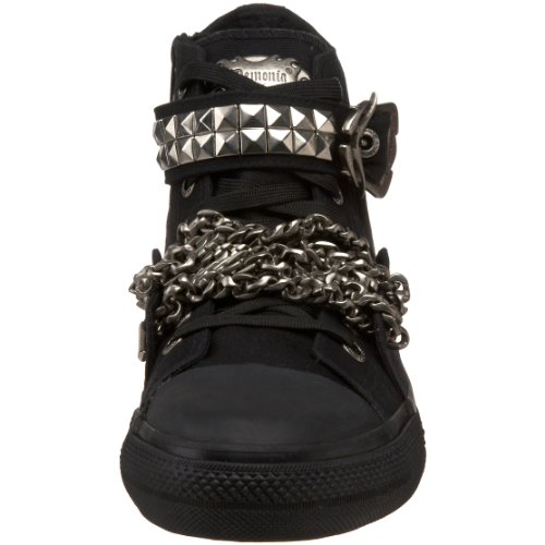 Amazon.com Be Deviant with this enhanced sneaker from Pleaser. The canvas upper is lightweight and breathable, while the chain link and stud detailing pair with the spike buckle to turn heads no matter where you tred. Plus, the flexible rubber outsole and lightly padded insole add all-day comfort. 0