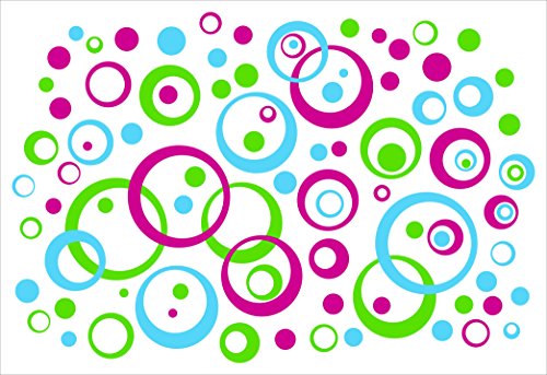 Wall Decor Plus More WDPM221 Wall Vinyl Sticker Decal Circles and Rings, Hot Pink/Lime Green/Ice Blue, 75-Piece