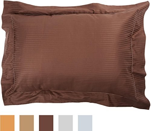 Bellino Fine Linens Mille Righe Single King Sham, Chocolate