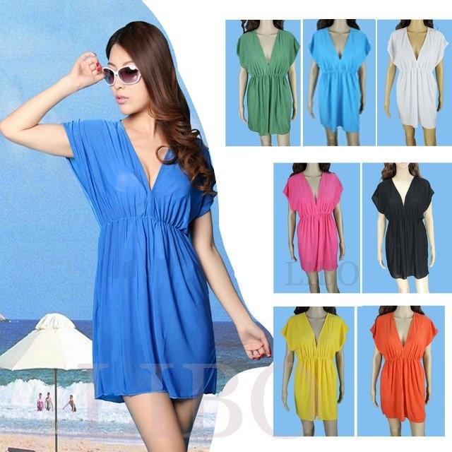 one-piece sexy beach Swimwear Bikini skirt Wear Women Dress V Neck Solid Beading Sleeveless Swimsuit Cover-Up