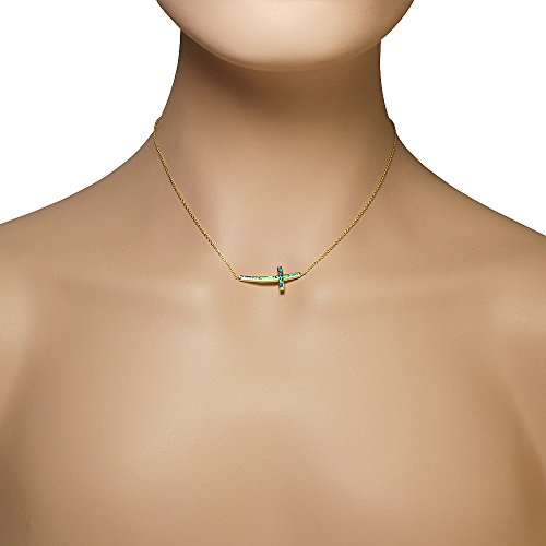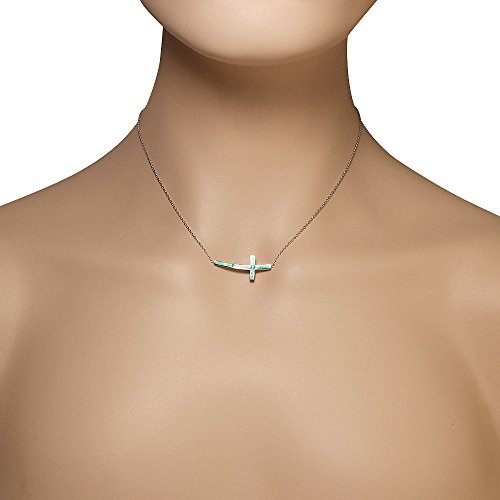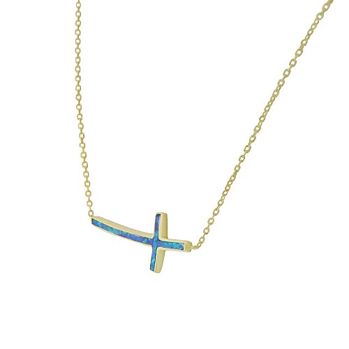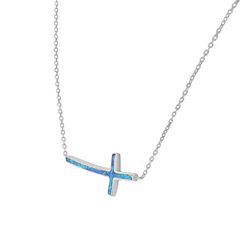 -. Title : 925 Sterling Silver Blue Simulated Opal Curved Sideways Cross Pendant Necklace