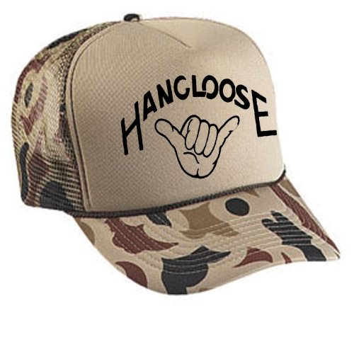 Tan Camouflage Camp Hang Loose Shaka Mesh Trucker Hat Cap
