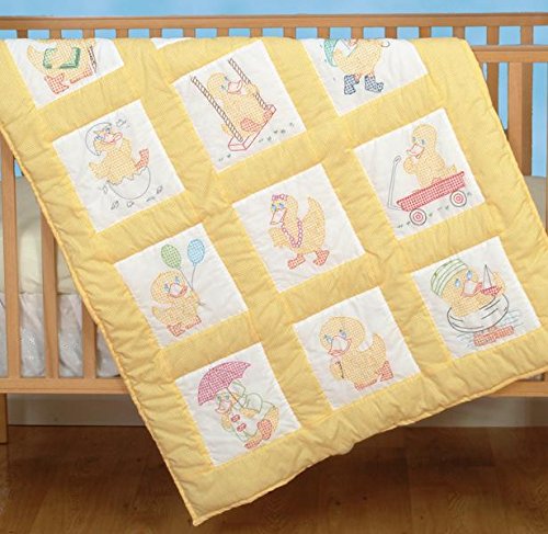 Stamped White Nursery Quilt Blocks 9"X9" 12/Pkg-Baby Ducks
