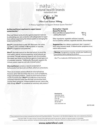 (natuRxheal)/Vitamins Dietary Supplements/Herbal Supplements/DIRECT FROM USA/Olivir Olive Leaf Extract 500 mg (45 Vegetarian Capsules)