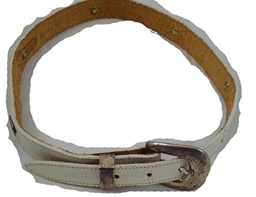 -. Title : distressed cream kids belt with antiqued buckle and conchos 1 inch wide 26 inch