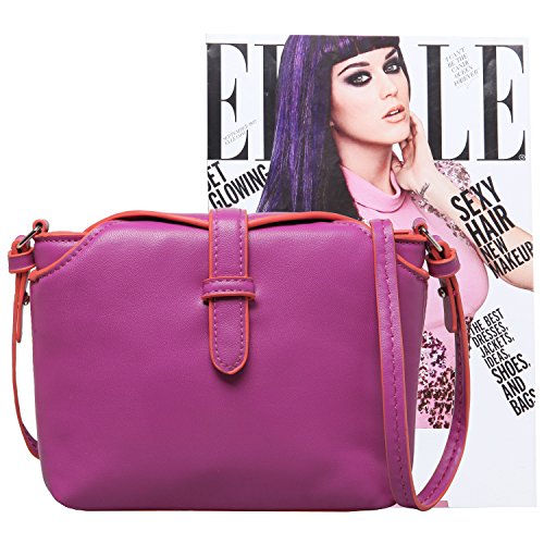 - Feature : Fashionable mini cross body satchel will add some POP to your wardrobe. / Features 3 compartments perfect for organizing and storing your wallet, keys, cell phone, makeup, and other daily essentials. / Made of soft leatherette with magnetic button snapped enclosure. Carry as a clutch or use the shoulder strap to transport messenger style. / **Official MG Collection® product by MyGift® features signature keychain charm.** / Approximate Dimensions: Exterior - 9" L X 2.5" W X 6.75" H. Interior - 7.5" L X 2.25" W X 6" H. Shoulder Strap - 20" drop.