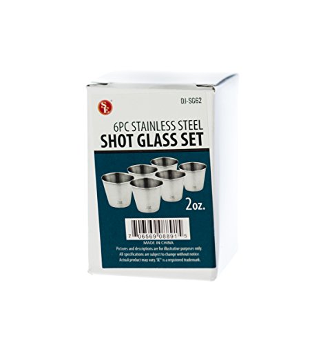 SE DJ-SG62 Stainless Steel Shot Glass Set Ii Capacity 2 Oz Ii Set of 6 Ii Great For Parties