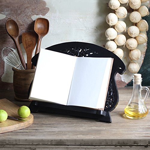 Product Description Kamla Sellers Kitchen Cookbook Stand Wooden Recipe Music Book Holder Folding Adjustable Multipurpose Book Reading iPad Stand Handmade with Foliage Motif 0