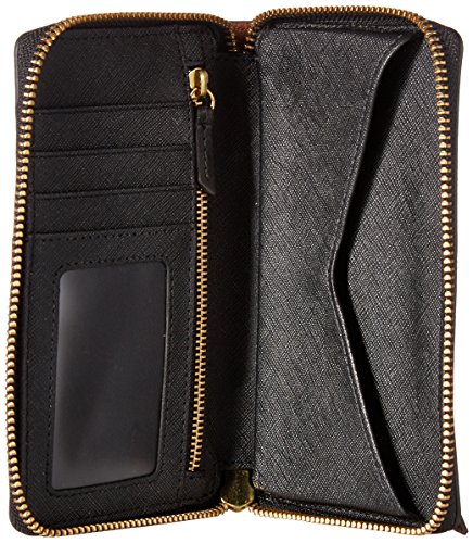 Measurements: 6.25"l x 0.88"w x 4"h; interior features: 2 bill compartments, 3 credit card slots, 1 id window, 1 zipper pocket and 1 phone pocket; exterior features: 1 back zipper pocket