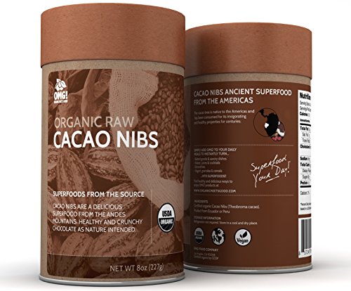 OMG! It's a Superfood - Rich in antioxidants and a good source of iron, magnesium and fiber, Cacao Nibs will give you an energizing burst of pure chocolate flavor. Sourced from the Andes Mountains in Peru this sugar free snack adds the perfect crunch when added to your favorite snack or eaten on its own. Cacao Nibs have high levels of theobromine which will give a boost similar to caffeine but without the side effects. OMG! Cacao Nibs are 100% Certified Organic, Vegan and Kosher. OMG!'s 3 guiding principles- Provide healthy and tasty products, live an environmentally friendly and organic lifestyle, promote global awareness. Offering a 100% money-back satisfaction guarantee. We stand behind our products and offer a 30-day money back guarantee, backed by an outstanding customer service team.Feature