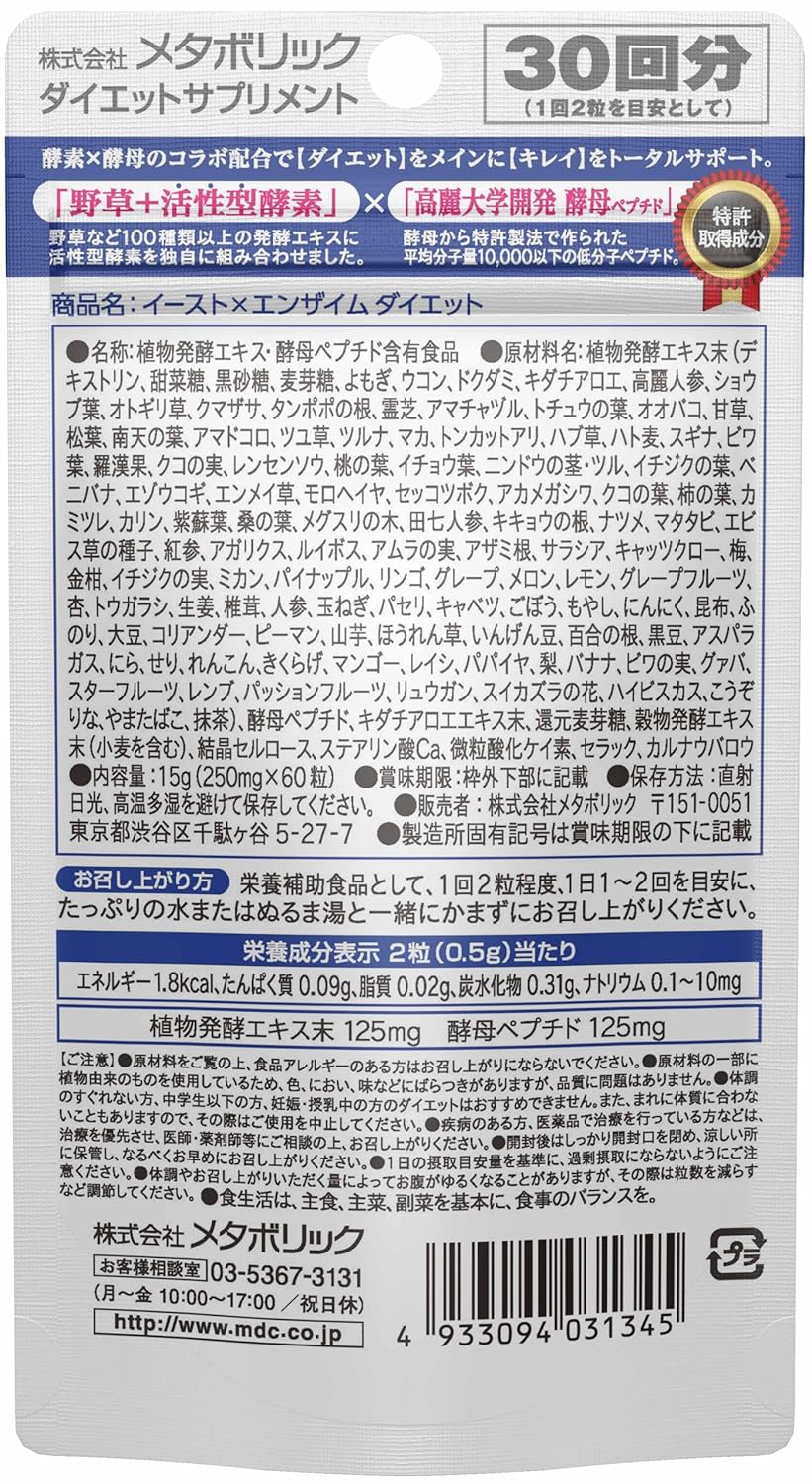 ・「イースト×エンザイムダイエット」は、酵素と酵母をメインにダイエット・キレイ・スッキリをサポートするサプリメントです。
