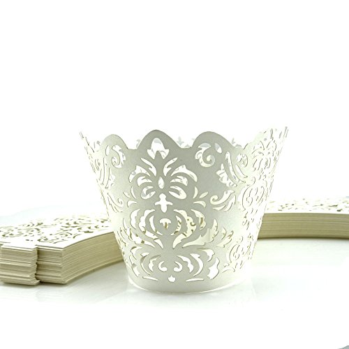 Honbay Flower Vine Cupcake Wrappers, Pack of 50 Filigree Little Vine Lace Hollow Cupcake Wrapper Liner Baking Cup Muffin Cake Trays for Wedding Birthday Chrismas Party Cake Decoration