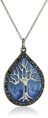 -. Feature : Sterling silver "Tree of Life" necklace featuring teardrop pendant framed with marcasite stones and filled with colorful epoxy / Cable chain with sP.R.Ing-ring clasp / The natural properties and composition of mined gemstones define the unique beauty of each piece. The image may show slight differences to the actual stone in color and texture. / Imported