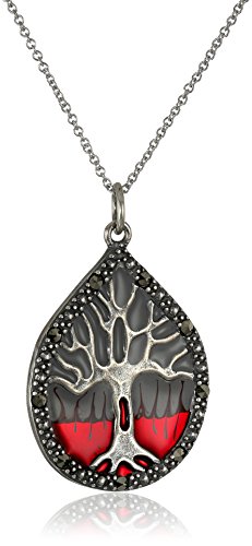 -. Title : Sterling Silver Marcasite Epoxy Tree of Life Pendant Necklace, 18"