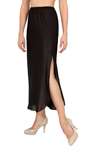 The BellaSous 36 or 38 inch, one slit maxi-length slip (design number 1136), by Malco Modes, is a staple for a woman's everyday wardrobe. This single slit garment is made of soft nylon tricot, and is trimmed at the bottom hem with elegant matching lace. The waistband is made of very stretchy elastic, which is gently gathered for added flexibility. We have used the softest and most luxurious anti-static and non-cling nylon tricot fabric available, for the perfect combination of breathability, warmth, and comfort! Hand wash warm. No bleach. Drip dry. Available in black, white, and neutral/nude. BellaSous intimates make you feel beautiful, inside and out. Don't be fooled by cheap imports made of inferior fabrics - since the 1940's, all BellaSous / Malco Modes garments have been built with the quality and durability required by the most discerning customers. We use only the softest, finest luxury fabrics, and all of our products are 100% hand-crafted with pride in the U.S.A. After just a single use you will notice the difference! Small: waist stretches from 22 inches to 46 inches Medium: waist stretches from 25 inches to 50 inches Large: waist stretches from 27 inches to 54 inches X-Large: waist stretches from 30 inches to 60 inches XX-Large: waist tretches from 34 inches to 68 inches XXX-Large: waist stretches from 38 inches to 74 inches NOTE: Remember to consider hip measurments when selecting a size. Tends to run a bit large - if your waist measurement falls in between two sizes, purchase the SMALLER of the two sizes. VERY IMPORTANT: Please know that we go to great lengths to ensure the product images are color accurate, but, colors display differently on all monitors. Please call or email if you have any questions or concerns at all before submitting your purchase 0 |