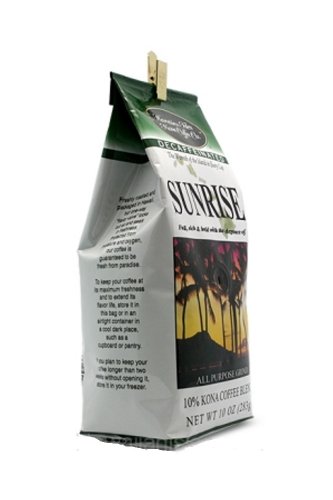 Dark roasted, bold taste for those who like rich European style coffee. Kona Sunrise s a Kona blend that combines 10% Kona coffee and fine arabica coffee from around the world to give you taste that you won't soon forget. Swiss process method of decaffeination is used to give you the best decaf possible. Hawaiian Isles Kona coffee blends uses Kona Coffee beans grown on the Big Island's Kona Coast where nature's elements combine to form perfect coffee growing conditions throughout the year. We blend this rich coffee with the finest arabica beans from around the world to bring you a truly unique gourmet taste.Feature