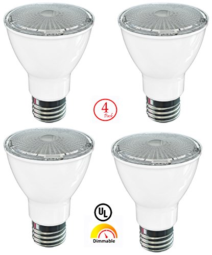SleekLighting Par 20, LED 7 Watt "Dimmable" Wide Flood Light Bulb(40°), Cool White (4000K), 500 Lumens, E26 Medium Base, 50 Watt Equivalent, UL Approved (PACK OF 4)