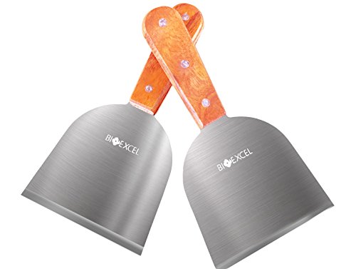 Bioexcel Stainless Steel Spatula with Wood Handle - (2 Pcs) – Griddle Scraper - Choose your Pack Size