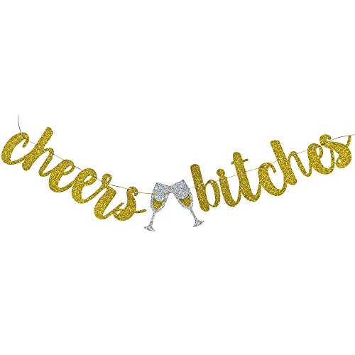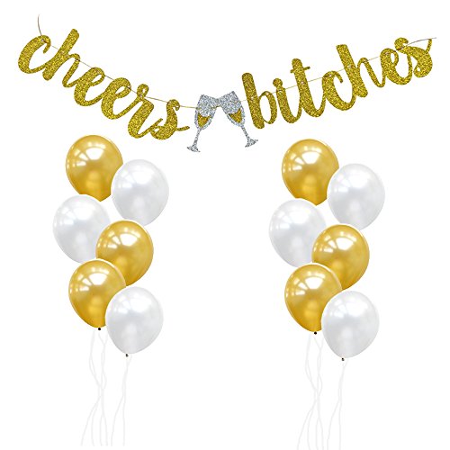 Cheers Bitches Banner With Gold And White Balloons for Bachelorette Party, Engagement Party,Birthday Party,Wedding Decoration