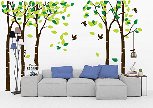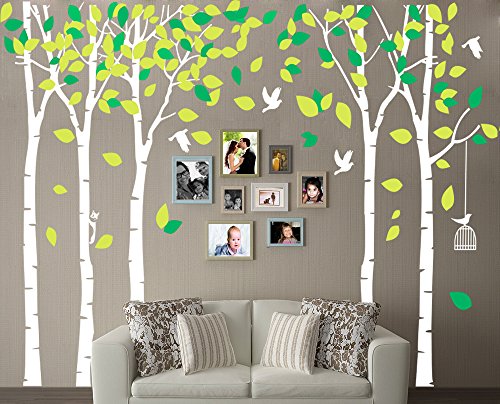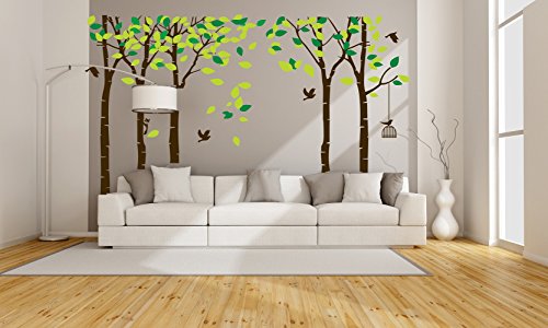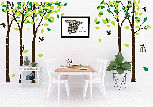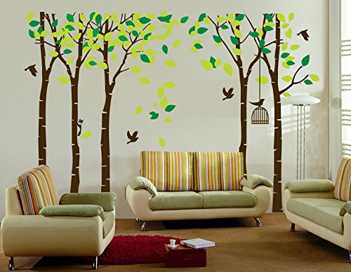 -. Title : LUCKKYY Large Five Family Trees Wall Decals with Birds and Birdcage Wall Sticks Family Room Art Decoration