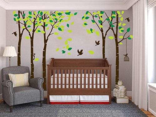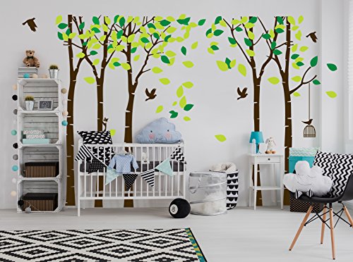-. Feature : Decorate Baby and Kids Nursery, interior walls or windows of home, bathroom, office, dorm, or store Self-adhesive wall sticker mural paper 5 trees decals,home decoration DIY item / It looks hand painted on the wall after application. / High-quality die-cut vinyl, durability, waterproof, general can keep 3-5years! / Recommend on wall size:264x180cm/103.9x70.9",finish on wall size all depend on your preference / The transfer film is only a tool, you can use it or not, it depends on you.The decal will come separated because of large size, before use, please make good planning of layout design, the picture shown on the page is just a reference.