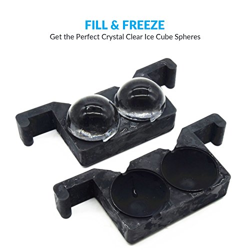 ✅ LARGE SIZE ICE BALLS: Each Ice cube tray makes two - 2 inch perfectly round spheres. Perfect for whiskey, scotch, rum, tequila, mixed and non-alcoholic drinks.
