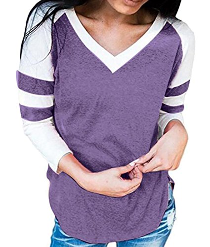 -. Title : WAYA- レディースロングスリーブネックカラーブロックストライプの快適なシャツ・トップ・ブラウス