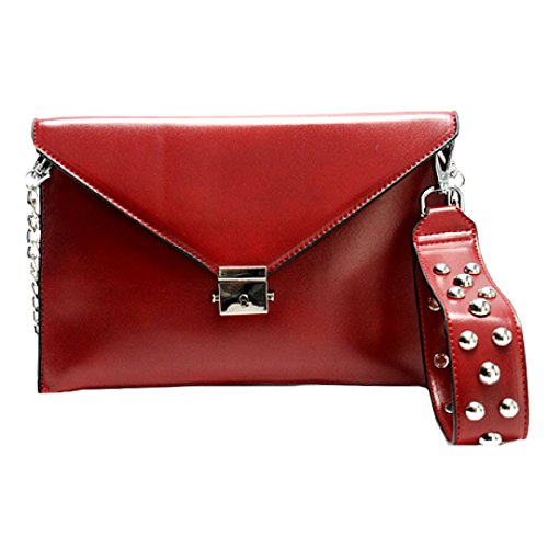 Punk Rivet Studded Envelope Clutch Handbag Chain Strap Wristlet Shoulder Cross Body Bag from Mily