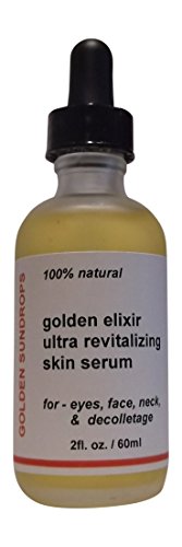 Golden Sundrops - 100% natural Golden Elixir ULTRA HIGH POTENCY SERUM comes in two sizes - 1fl. oz / 30ml - and - 2fl. oz / 60ml. A NATURAL ORGANIC, PURE - ULTRA HIGH POTENCY SERUM combines: Cold pressed Organic Pomegranate oil - one of nature's most powerful antioxidants, Pumpkin Seed oil - one of the most nutritious oils available, Rosehip Seed oil - a superior oil for dry skin, scars, wrinkles and premature aging, Camellia Seed oil revitalizing and rejuvenating, and in addition Jojoba, Grape Seed, Soybean oils, Vitamin E and Beta - Carotene, soothing botanical extracts - some of the BEST NATURAL INGREDIENTS to target specific signs of aging. Ingredients are balanced to maximize their beneficial properties.
