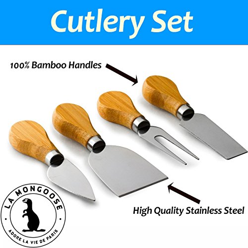 - WINTER SALE – CHEESE BOARD WITH CUTLERY SET BY LA MONGOOSE, A PERFECT GIFT FOR CHRISTMAS: Give this beautifully designed set to someone you love, for Christmas, birthdays, housewarming parties, weddings, engagements, baby showers, wine and cheese tastings, and many other events. Impress your guests at your next social gathering with the elegant grain finish and warm bamboo color of this beautiful cheese board.