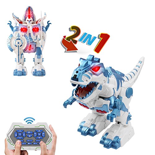-. Feature : 1.Two different Model to Play, Warrior or a Giant Dragon, real dragon roaring sound and Sparking LED eyes / Multi-function to play: Walking,Slide forward/backward ,Dancing,Joke,Science, Figure Gesture, Never tire to play !! / 3. Equip with a Sword and a Shield;2*pack of recharable batties for install at the bottom of feed; / 4.Inclduing: A giant Robot toys, instruction book, batteries, remote control, usb charge / 5.For Ages 3 and Up. Best Gift for boys,girls,kids !