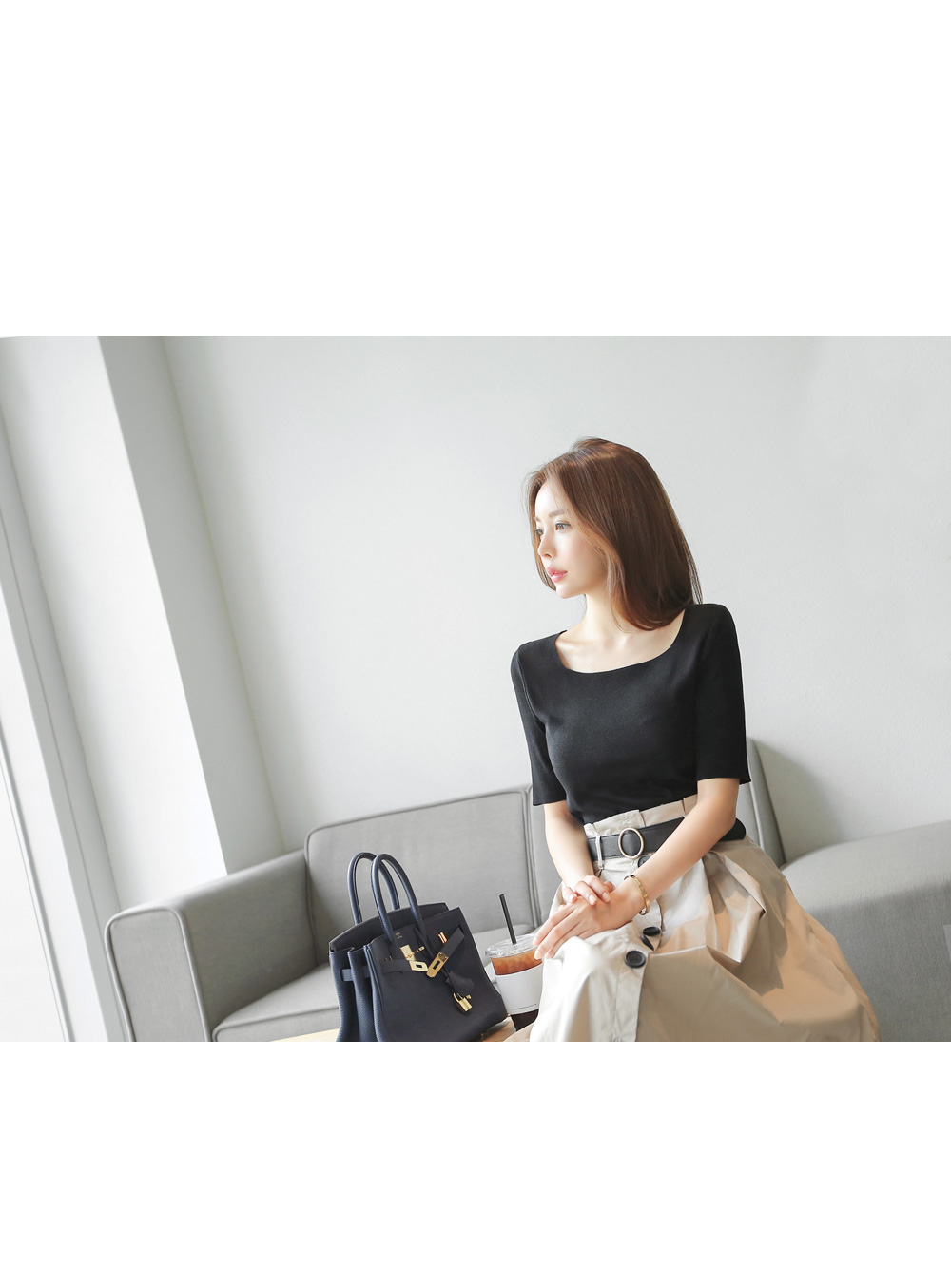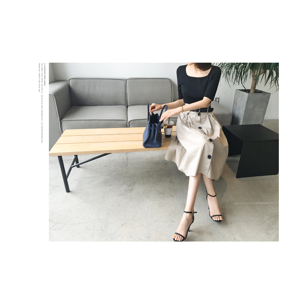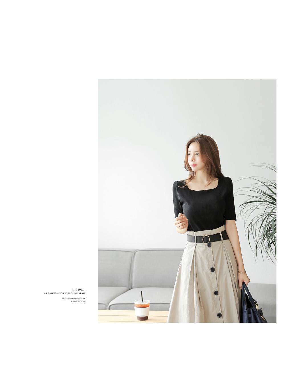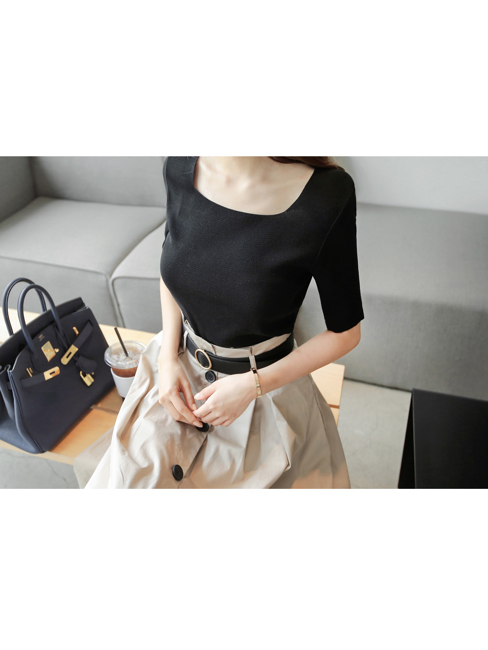 스퀘어 네크라인으로 입었을때