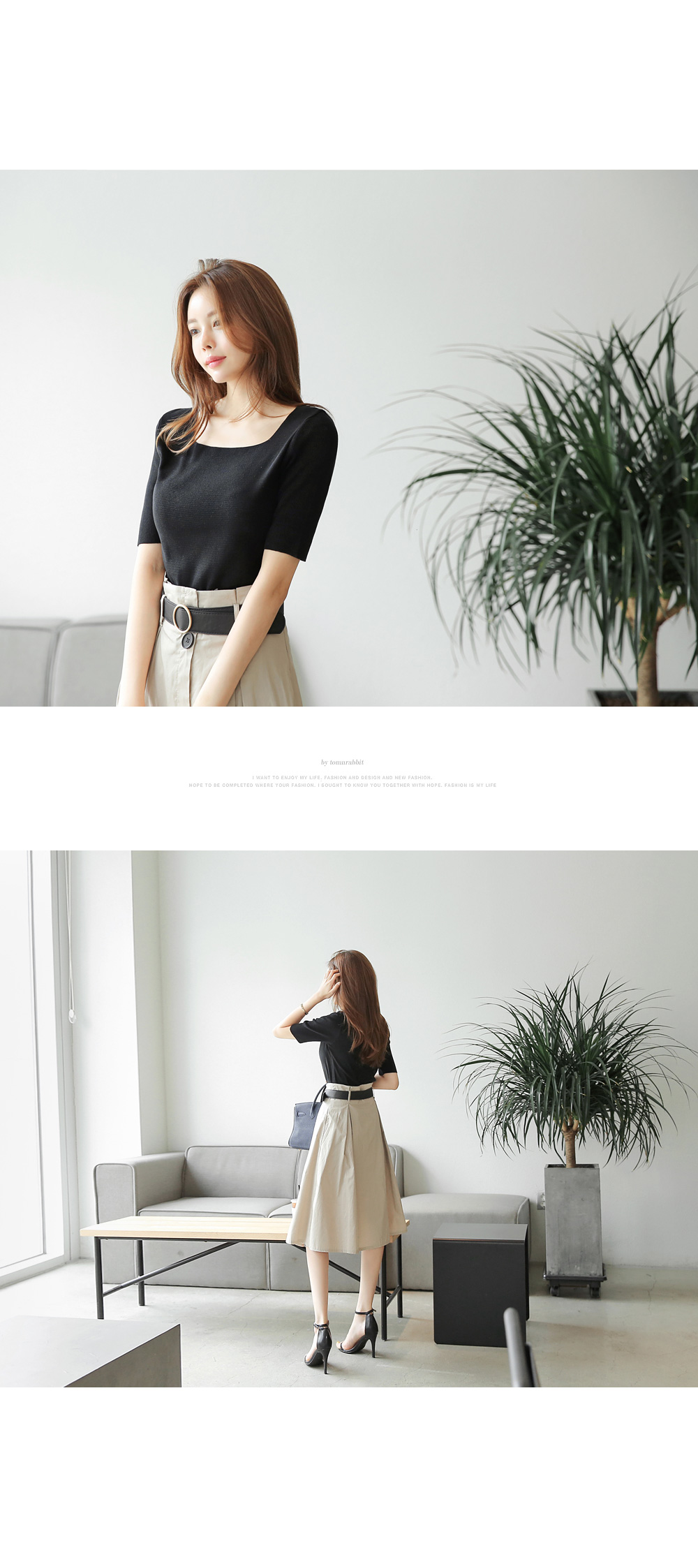 스퀘어넥 디자인의 니트티를 소개합니다.