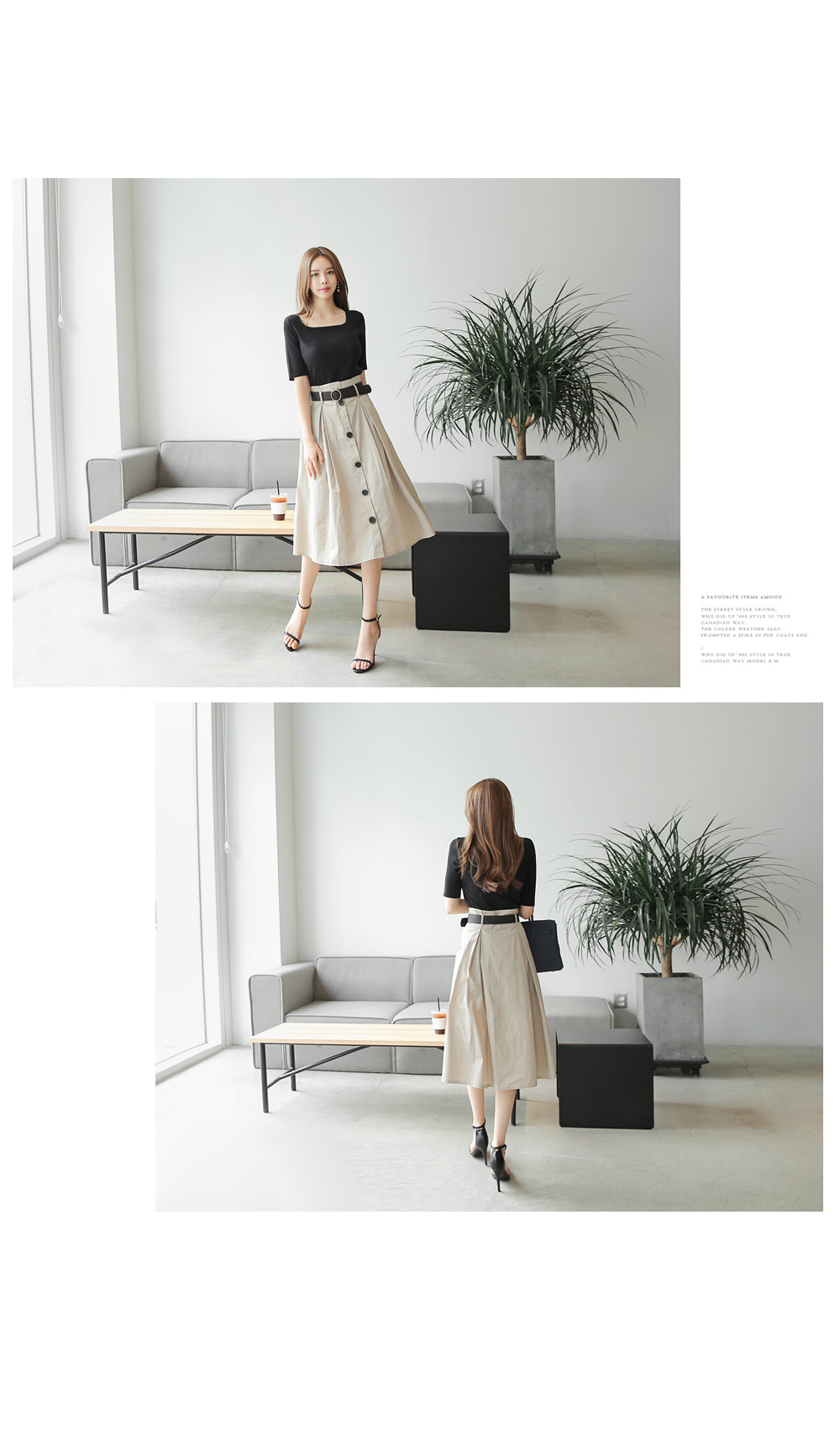 스커트, 팬츠 등 다양한 코디에 두루두루 매치하기 좋답니다.