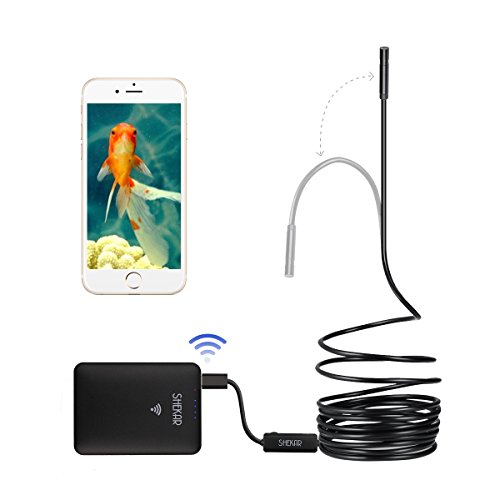 Rigid Flexible Wi-Fi Endoscope Borescope HD 2MP Inspection Camera with 6 Adjustable LEDs for iPhones/ iPads / Android Phones / Tablet/ Mac PC (5M/16.4ft Cable)