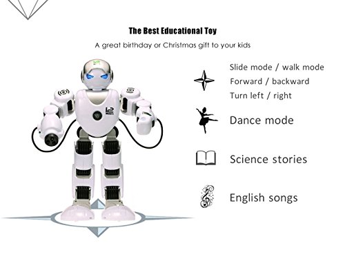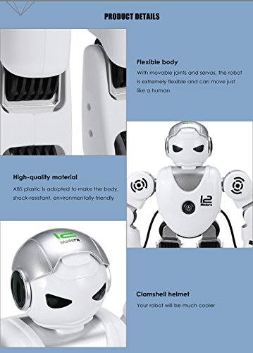 Alpha Robot: Made up of high quality ABS materials, more durable.Humanoid design: movable helmet, flexible arm and cool led light at the eye makes the robot more vivid and interesting, a good companion for kids age 3+.