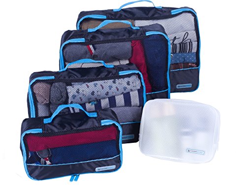 VALUE SET - 5 TRAVEL PACKING CUBES that includes Extra Large( 17.5" x 12.75" x 4"),Large (13.75" x 12.75" x 4"),Medium (13.75x9.75x4),Small (11" x 6.75" x 4") and Toiletry Bag (9" x 6.5" x 2.5").