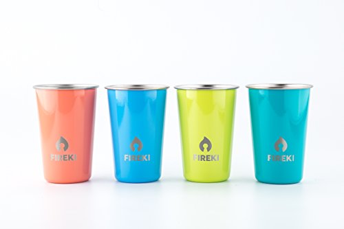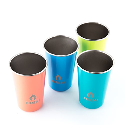 FIREKI 16 oz Stackable Stainless Steel Pint Cups (Set of 4)