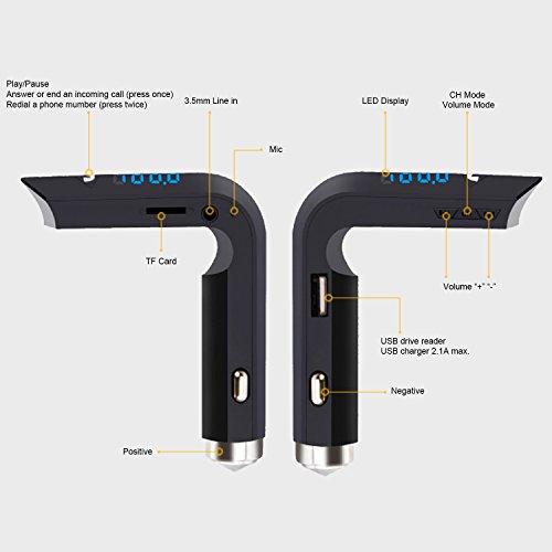 FM transmitter sound effect: Built-in high-quality microphone and noise cancellation through CVC technology make the sound crystal-clear. A device with one-year warranty.