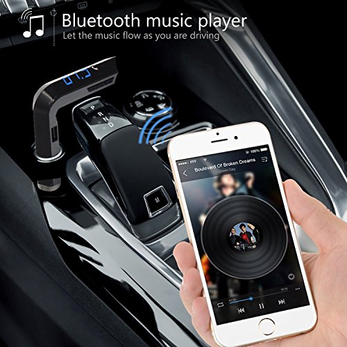 Bluetooth FM Transmitter for Car Wireless MP3 Player Car Kit for FM Radio Receiver, Hands-free Phone Calling with iPhone or Android Phones and USB Car Charger
