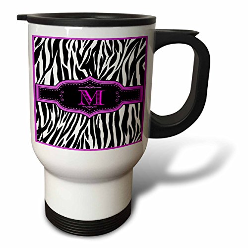 3dRose tm_214138_1 Monogram with M Initial Zebra Print Hot Pink and Black Travel Mug, 14 oz, White