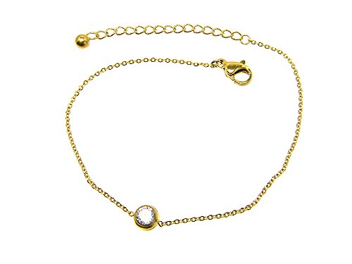 -. Title : 上品な輝き 一粒 Czダイヤモンド ブレスレット 18金ゴールド仕上 サージカルステンレス ジュエリー [アレルギー対策] レディースファッション クリスタル 手首