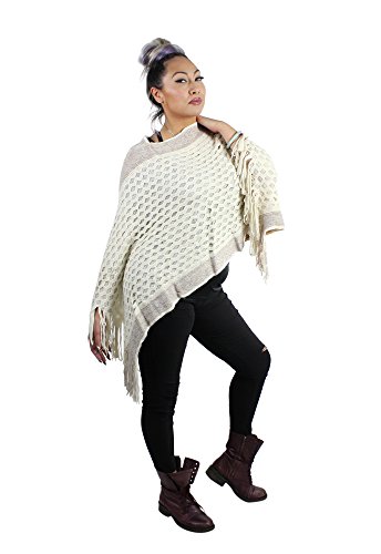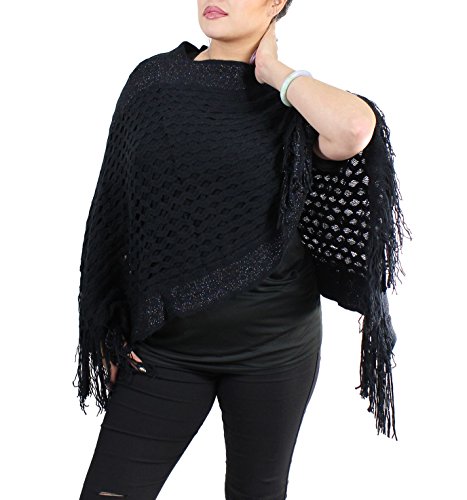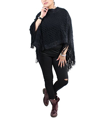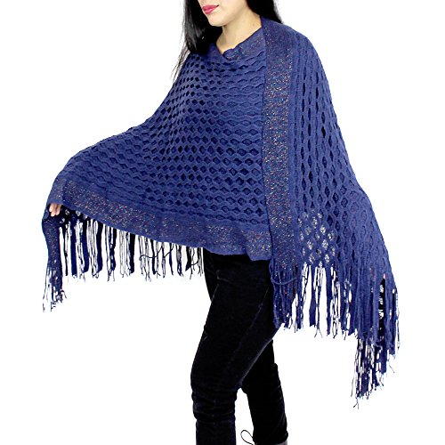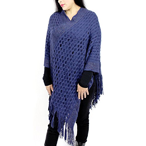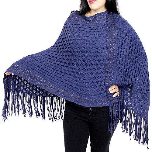 Binding : Apparel Product Description A streak of gold threaded detail makes this poncho pop in neckline trim. Fringed tassels top off the look to capture movement. Let this streak of brilliance get you noticed for both day and night looks! Made of ultra soft knitted acrylic. Weight: 14 oz. Dimensions: Lay flat: 36 "W x 30 "L from neckline to bottom of tassel. Material: 100% acrylic. 0