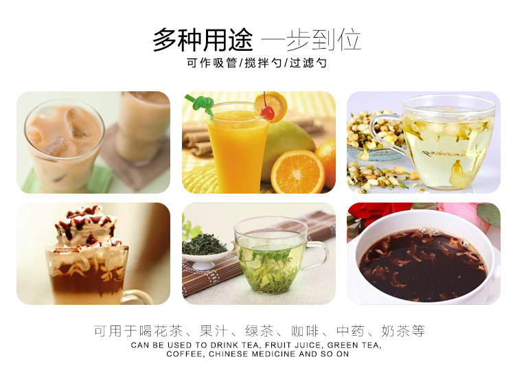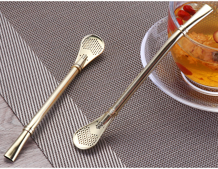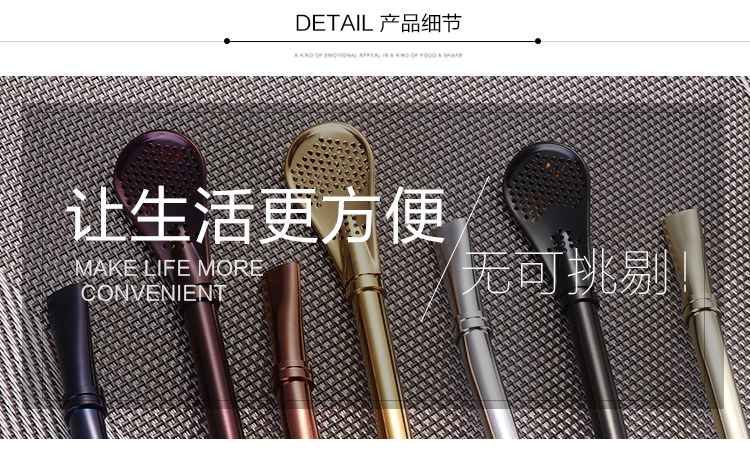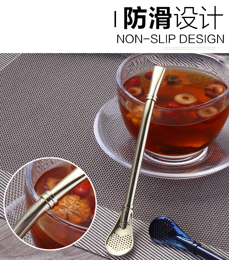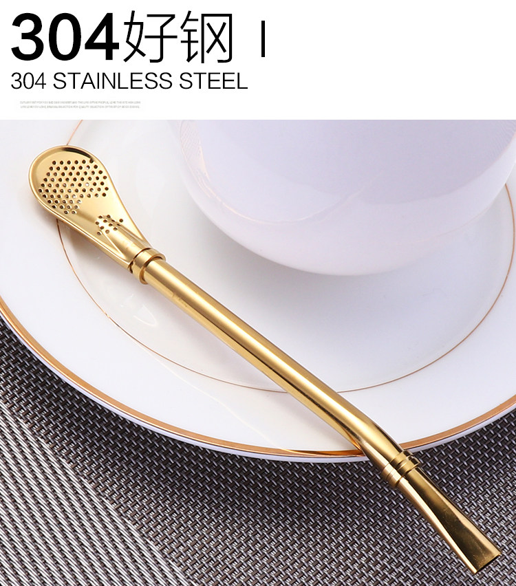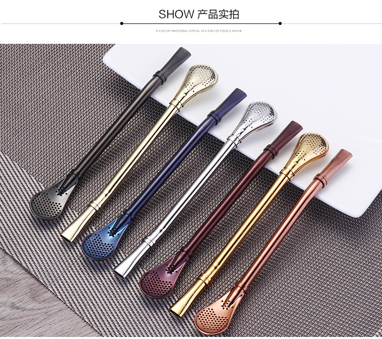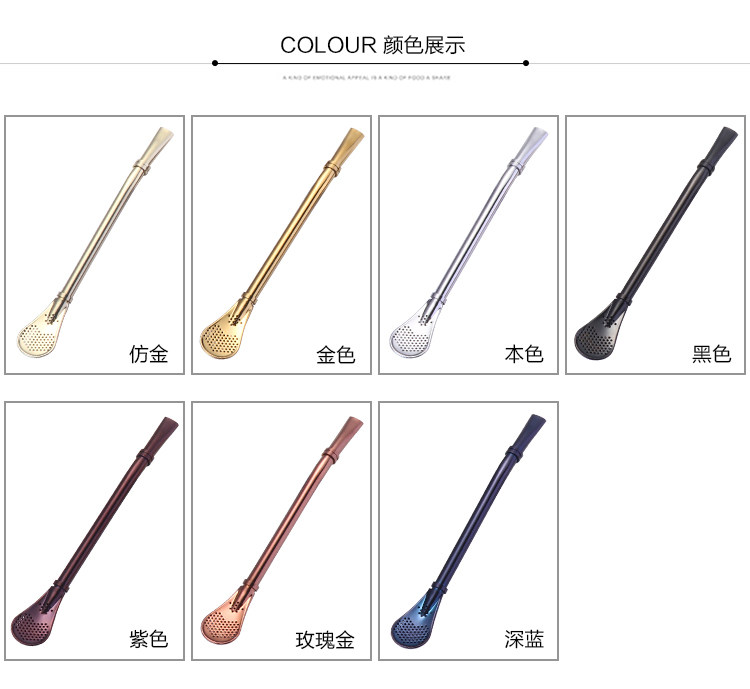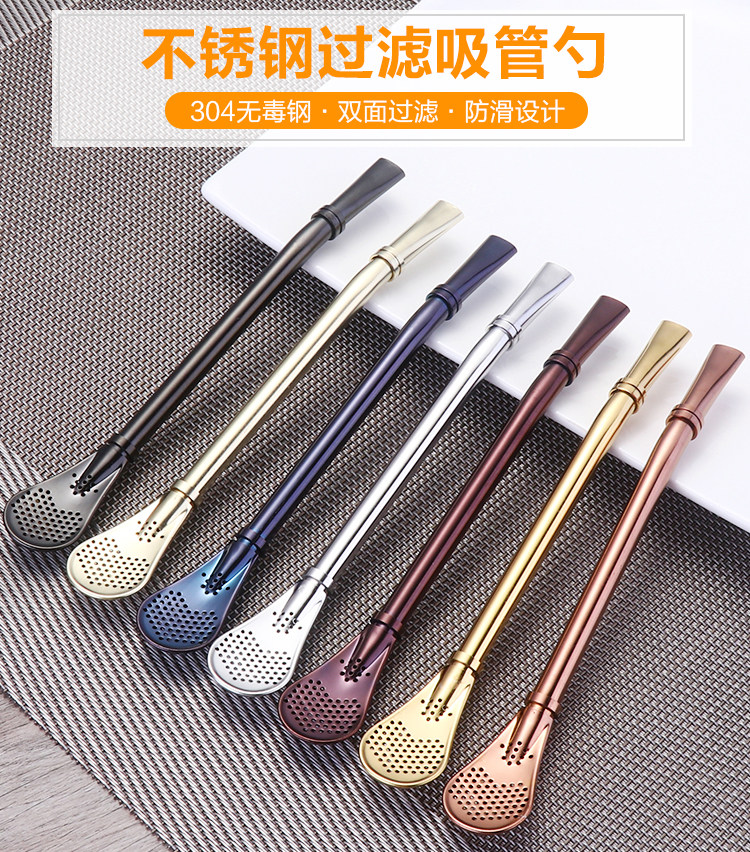 304不锈钢儿童吸管勺 7彩创意热饮吸管搅拌勺 马黛茶过滤器茶漏